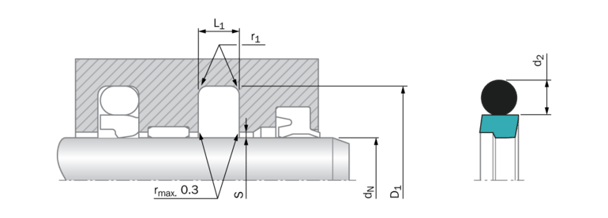 Zurcon®rimseal is an elastomer energized seal element. The changes in seal position in the groove, necessary for optimum sealing function, are guaranteed by the combination of the two parts: the O-ring and seal ring in order to achieve a contact force increasing sealing effect with increasing pressure, the seal has a chamfer on the low pressure side which causes the seal to tilt slightly so that the seal ring is forced against the side of the groove. This creates an area of maximum pressure at the edge of the seal.